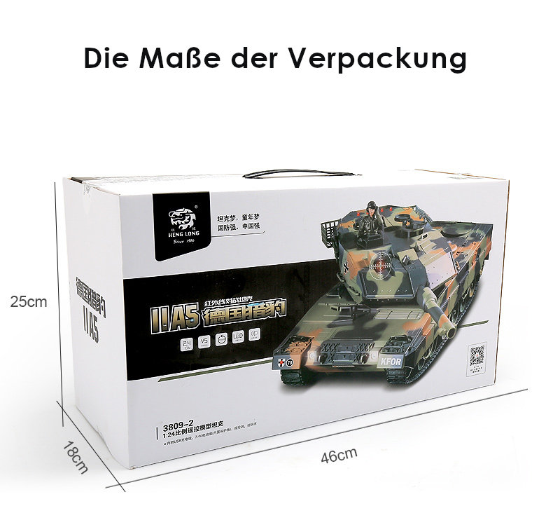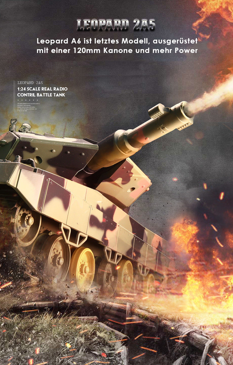 Schreibe die erste Bewertung für „RC Panzer „Deutscher Leopard A5“ 1:24 mit Schuss und Sound „809“ mit IR-Battle“